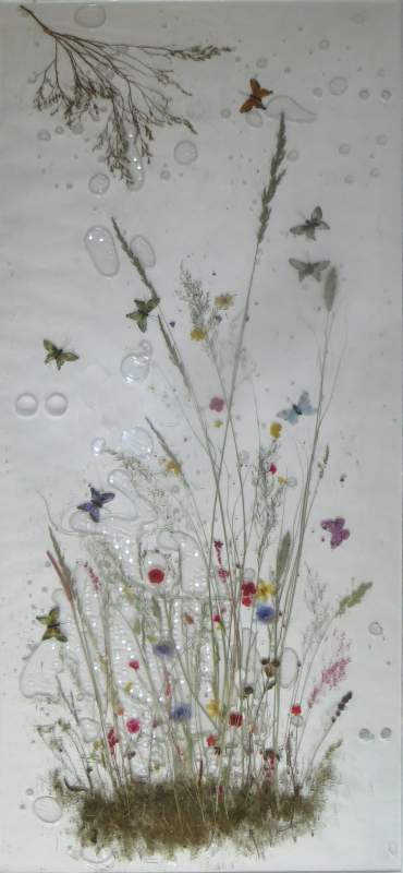 Blumen und Gräser individuell nach Ihren Wünschen in Glas eingegossen. Jede Scheibe ein Unikat. Durch eine spezielle Gießtechnik werden beim Intarsienglas natürliche und eingefärbte Gräser, Strohblumen, Seidenblumen und vieles mehr in die Glasscheibe eingebracht. Schmetterlinge sind aus Federn/Seide gefertigt.