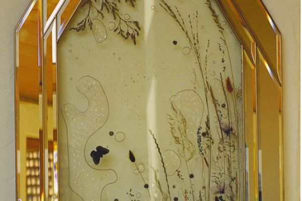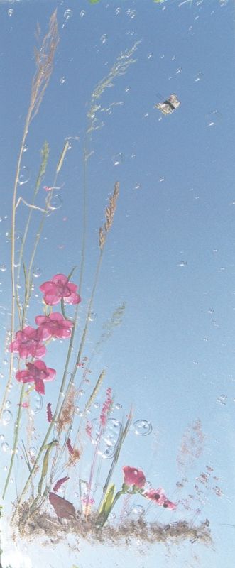 Durch eine spezielle Gießtechnik werden beim Intarsienglas natürliche und eingefärbte Gräser, Strohblumen, Seidenblumen und vieles mehr in die Glasscheibe eingebracht. Schmetterlinge sind aus Federn/Seide gefertigt. Jede beliebige Hauptfarbe der Blumen ist nach Ihren Vorstellungen individuell wählbar. Die Stärke der Scheiben richtet sich nach deren Größe und Verwendungszweck.